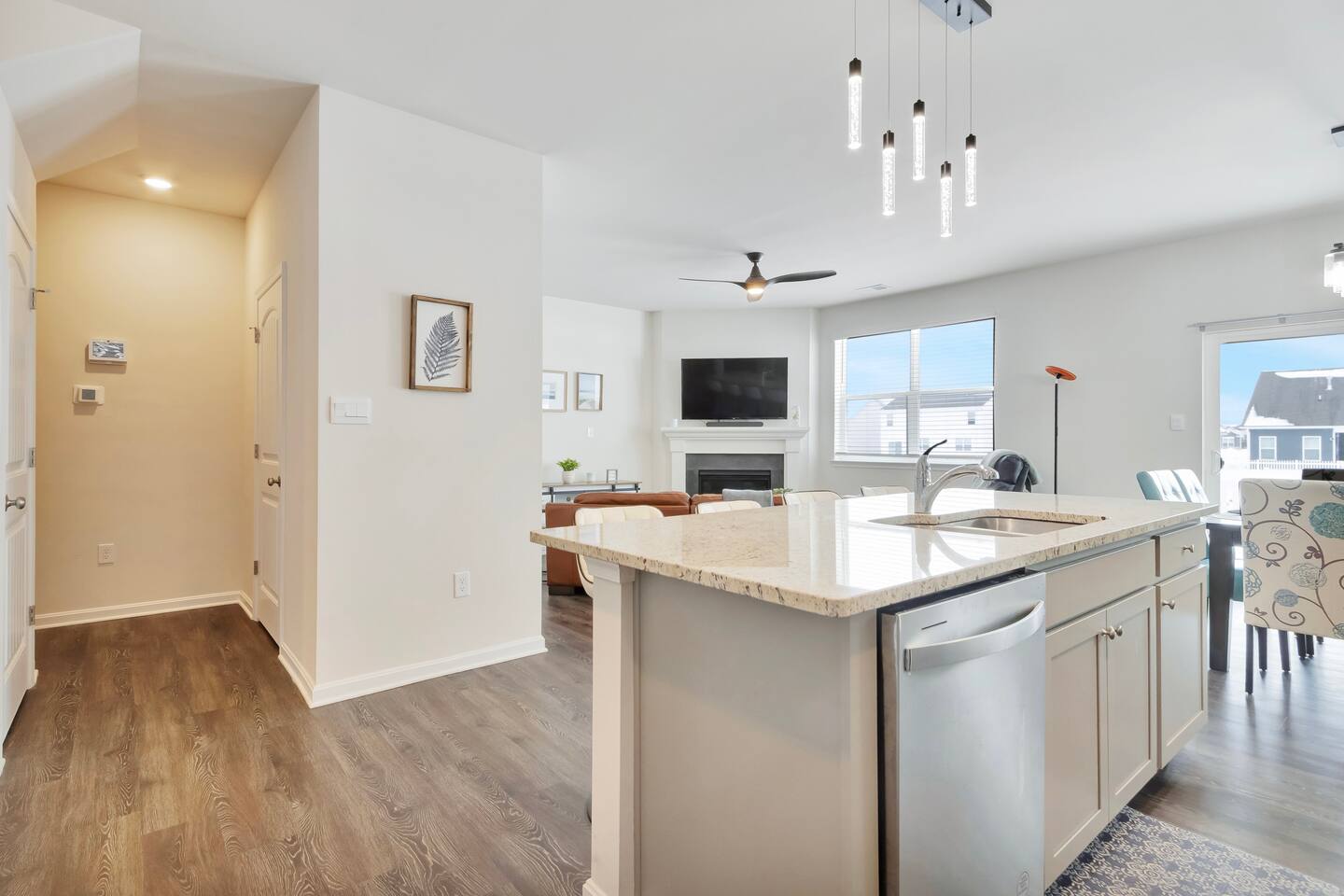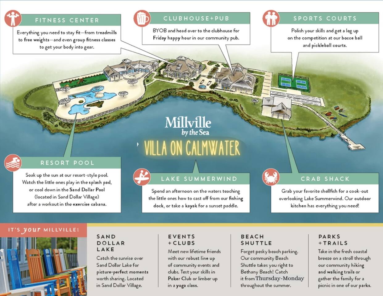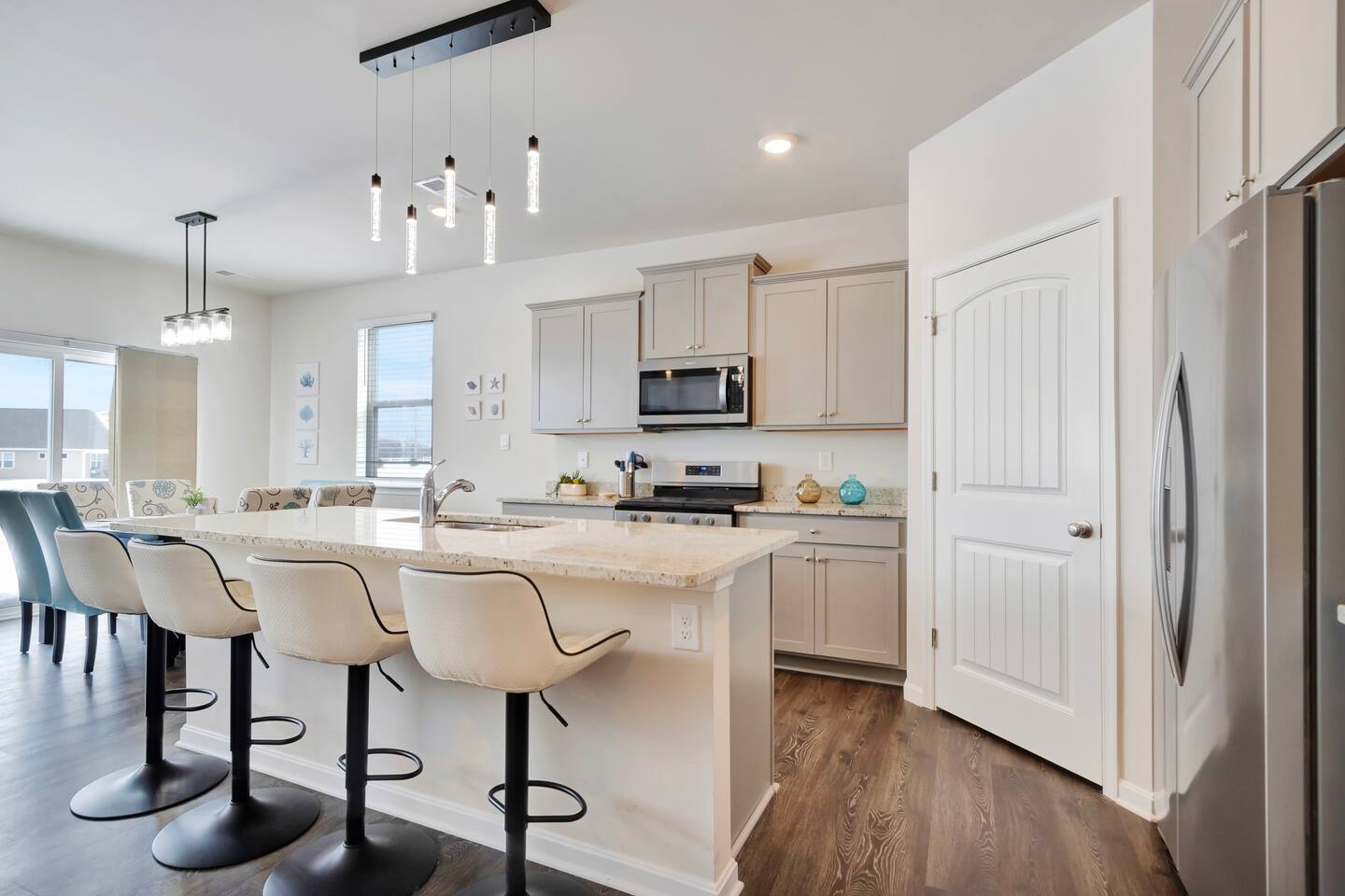 Located just 4 miles from Bethany Beach and the boardwalk, this 5-bedroom home in Millville is perfect for large families, multi-generational groups, golf trips, beach vacations, and remote work getaways. ✔ Dog Friendly (Fully Fenced Yard) ✔ 3 Community Pools + Splash Zones ✔ Beach Shuttle (Seasonal) ✔ 85” & 65” Smart TVs ✔ Bikes + Beach Gear Included ✔ Multiple Living Areas for Groups ✔ Sleeps 12 (plus children under 6) This spacious 5-bedroom, 3.5-bath coastal home comfortably accommodates up to 12 guests (children under 6 not counted toward occupancy). First Floor- Primary Suite with King Bed + Private Bath Bright open-concept kitchen & living area 65” Smart TV Bonus room with twin daybed + pull-out twin Two dedicated workspaces with desks (main level) Half bath Second Floor- Loft with 85” Smart TV Two-desk dedicated workspace upstairs — ideal for remote work, school, or extended stays Bedroom 2: Two twin bunk bed sets (great for kids) Bedroom 3: Queen bed Bedroom 4: Queen bed Bedroom 5: Twin bed + full bunk bed Two full bathrooms 💻 With multiple desk areas on both floors, this home is perfect for remote workers, traveling professionals, and families balancing work and vacation. 🐾 Dog-Friendly Coastal Retreat We love welcoming well-behaved dogs! Fully fenced backyard Maximum 2 dogs $50 per dog per stay Prior approval required Plenty of outdoor space for safe play and relaxing evenings. 🌴 Outdoor Living- Pond views Patio seating Cornhole 3 adult bikes Fully fenced yard Beach wagon, chairs, umbrellas & toys Fishing rods & crab traps Pickleball equipment 🏊 Community Amenities (Amenity Passes Included) Twelve amenity passes included (required for guests 6+). $175 HOA amenity fee included in reservation. Guests enjoy access to: 3 Community Pools + Kids Splash Zones Fitness Centers Pickleball Courts Walking Trails Playgrounds Kayak Launch Docks Catch & Release Fishing Lakes Crab Shack Pool Tables & Ping Pong Seasonal Beach Shuttle (typically Thurs–Mon) The nearest pool is just a 2-minute walk. 📍 Prime Location – Near Bethany Beach & More Located in Millville, just minutes from top Delaware beaches and attractions: Beaches: Bethany Beach Boardwalk – 4 miles Fenwick Island State Park – 6 miles North Ocean City, MD – 17 miles Rehoboth Beach – 18 miles Dewey Beach – 15 miles Golf: Bear Trap Dunes – 1 mile Bethany Bay Golf Club – 3 miles Salt Pond Golf Club – 3 miles Outdoor & Attractions: Assawoman Canal Trail – 3 miles Holts Landing State Park – 4 miles Delaware Botanic Gardens – 10 miles Discoversea Shipwreck Museum – 10 miles Jungle Jim’s Water Park – 17 miles 🛏️ Amenities Included Essentials High-speed Wi-Fi Central A/C & heating Washer & dryer Bed linens + bath towels Extra pillows & blankets Kitchen Fully stocked kitchen Keurig + drip coffee maker Air fryer Blender Toaster Kettle Cookware, bakeware & utensils Entertainment 85” Smart TV (Loft) 65” Smart TV (Main Living Room) Board games & puzzles Kids toys & books Adult books Family Children’s dishes Bunk rooms Games & puzzles Fenced yard Two medium size dog crates 🚗 Parking Maximum 3 vehicles: 2 in driveway 1 in front of home No RVs, trailers, boats, or commercial vehicles overnight. 📅 Booking Details Saturday to Saturday stays (peak season) Check-in: 4:00 PM Saturday Check-out: 10:00 AM Saturday Primary renter must be 25+ Rental agreement + HOA rules must be signed within 48 hours Driver’s license + vehicle plate numbers required before arrival 🕊️ House Rules Maximum occupancy: 12 (excluding children under 6) Registered guests only Quiet hours: 11 PM – 8 AM No parties or events No smoking or vaping Security cameras at front and back exterior entrances only. Why Guests Love This Home ✔ Spacious layout for large families ✔ Close to Bethany Beach without the noise ✔ Dog friendly with fenced yard ✔ Multiple pools and amenities ✔ Beach gear included ✔ Great for remote work ✔ Ideal for golf trips