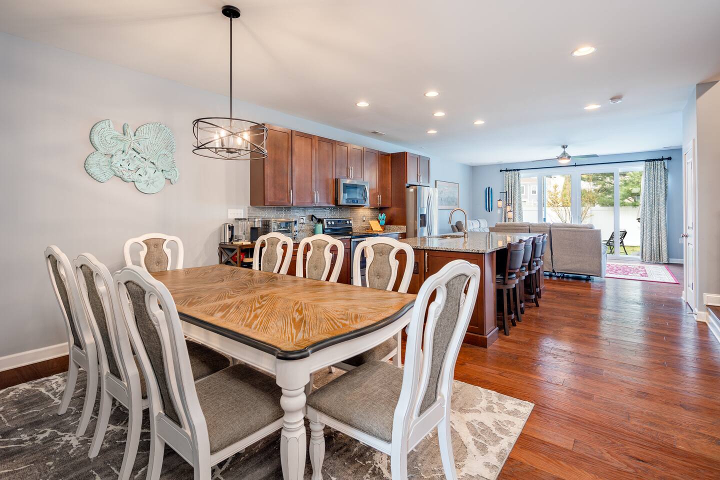 Nestled in the exclusive, gated community of Shoal Harbor, this spacious townhouse offers the perfect getaway, just a short walk from the beach, Boardwalk, Rehoboth Ave shops, and an array of restaurants. Park your car (with free parking for 2 vehicles) and step into a carefree beach lifestyle. Whether you're lounging by the community pool, biking the scenic Breakwater Junction trail, or simply unwinding on the patio with a glass of wine, this is the vacation you deserve! With 3 floors and 2400 sq ft of beautifully appointed living space, this home comfortably accommodates family and friends with an ideal blend of comfort and style. The open-concept layout is enhanced by 9 ft ceilings and wood floors throughout (except for the two smaller bedrooms). A chef’s dream kitchen boasts an oversized island perfect for family gatherings, while large sliding doors lead you out to the spacious patio. Each of the four bedrooms is outfitted with all-new furniture and Sealy Posturepedic mattresses, ensuring a restful night's sleep. Plus, large smart TVs in every bedroom offer endless entertainment options for everyone in the family, whether it’s streaming your favorite show or playing video games. Linens Included: We provide fresh, high-quality linens for your stay, so you can simply relax and enjoy your vacation without the hassle. For added convenience, your stay includes two bikes to explore the town. Feel free to bring your own or rent from one of the many nearby bike shops. Shoal Harbor is a family-friendly, gated community, perfect for refreshing, unwinding, and creating lasting memories. Prime Location: Located next to the popular Rehoboth Ave, our townhouse is within walking distance to everything Rehoboth Beach has to offer. Just a short stroll to the beach and iconic mile-long boardwalk, you’ll be surrounded by 5-star restaurants offering world-class cuisine, tax-free shopping at Tanger Outlets, and endless entertainment options. From hiking and biking trails to state parks, waterparks, mini golf, go-karting, and more—there’s something for everyone, all within easy walking or biking distance. Max occupancy: 8 guests, including children. Come to experience the best of Rehoboth Beach in a home designed for comfort and convenience. This is the getaway you’ve been waiting for!